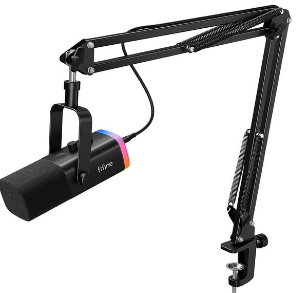 XLR/USB dynamic mic with boom arm, gain control, and clear, rich sound. Ideal for webinars, tutorials, or client updates where audio quality matters as much as video.